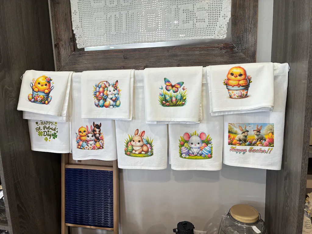 Companies that design, print, and sell branded or seasonal kitchen towels through their own retail stores, Faire, Etsy, and direct-to-consumer channels. They reorder by the case and season.